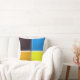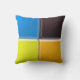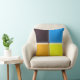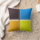 Les carrés aux allures 3D biseautées, orange, jaune, bleu et noir, se retrouvent au centre du coussin. Le côté inverse affiche les mêmes couleurs dans des positions modifiées pour correspondre aux couleurs sur le devant à côté.