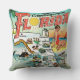 Un coussin de carte postale de Floride ! Un décor de maison du milieu du siècle, vraiment rétro. Les attractions anciennes, les villes et les illustrations animées de Floride rendent ce coussin fantastique! Choisissez votre taille, fermeture éclair ou pas de fermeture éclair et choisissez votre tissu. C'est facile avec l'aide de Zazzle. Nous l'aimons comme il est.