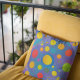 Cet abstrait coloré peint a des cercles jaunes, rouges, verts et bleus sur le violet. C'est de l'art IA créé au NightCafe.