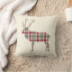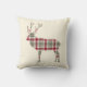 Coussin personnalisé pour cerf de tartan d'hiver. Tartan design de Pine And Berry avec un cerf en rouge canneberge, tan, charbon et ivoire tartan sur un arrière - plan couleur ivoire. L'arrière de ce coussin design est riche en rouge canneberge. Idéal pour Noël, vacances, Noël décoré dans un style rustique, boisé, folksy, campagnard, hiver (pittoresque), ou boisé. Cette silhouette de cerf, marie le décor d'autres animaux aux bois de rennes, d'orignaux, d'antilopes et de wapitis.