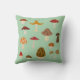 Une collection de champignons en automne bruns, rouges et oranges. L'arrière - plan est vert pâle.