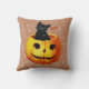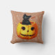 Chat d'Halloween en Citrouille jetez l'oreiller avec le très mignon petit chat noir assis dans un citrouille en disant, "Boo !"