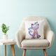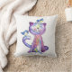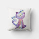 Coussin Chat mignon blanc violet avec oiseaux