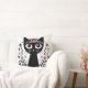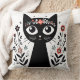 Coussin Chat noir aux grands yeux entouré de fleurs