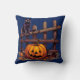 Coussin Chat noir sur clôture Jack-O' Lantern Halloween