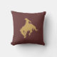 Ce coussin présente ce que tout le monde connaît du Wyoming. Les chevaux et les cowboys les chevauchent ! Il présente un cowboy or et une silhouette de cheval cassant sur un arrière - plan brun foncé. La même image apparaît de chaque côté du coussin. *Cette conception utilise l'image © Graphics Factory.com*