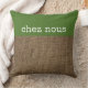 Cabine de campagne, oreiller à lancer français. Un regard rustique sur le burlap avec Chez Nous contre Green. Signifie "chez nous" en français.
