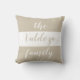 Nom de famille lance l'oreiller. Votre famille appréciera cette décoration chic et moderne ! L'oreiller à lancer a des rayures beiges et blanches customisées de "la famille (Nom)" dans les couleurs opposées.