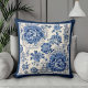 Coussin Chic Bleu blanc à fleurs chinoiserie toile monogra