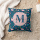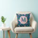 Chic Bleu Nuit Rose Papillon Fleur Monogramme Coussin de Jet