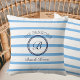 Coussin Chic Monogram Blue Stripes Nom de famille Beach Ho