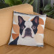Coussin Chien de Boston Terrier - Orange Géométrique