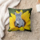 Ce coussin de lancer mignon et coloré présente mon dessin d'un mignon chiot français gris-taureau bleu assis au centre d'un tournesol géant.