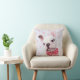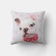 chiot français Bulldog, 7 mois, avec cravate arc-en-ciel rose et papier peint blanc arrière - plan, avec pois roses.