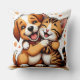 Coussin Chiot adorable et chaton accroché avec des sourire