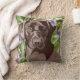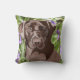 Cet oreiller à lancer présente mon portrait d'un chasseur Labrador Brown à courte distance au chocolat contre Bluebells.