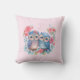 Un coussin avec l'image d'une paire de chouettes amoureuses assis ensemble sur une branche d'arbre. Entouré de jolies fleurs bleues, vertes et roses.