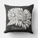 Coussin Chrysanthemum Black Line Drawing with Your Name