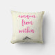 Un coussin avec une citation motivante inspirante de force pour élever et encourager qui dit : "conquérir de l'intérieur". L'arrière - plan est une texture grunge jaunâtre. Un croquis d'une montagne au fond, pour signifier la lutte, le voyage et un succès ultime. J'aime le contraste de la typographie mignonne et girly avec un arrière - plan à l'apparence rugueuse. J'espère que vous en apprécierez aussi. Merci d'avoir cherché.