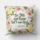 Beau coussin floral de guirlande de roses roses et jaunes avec la citation d'écriture sainte qui peut être modifiée.