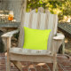 Un Oreiller extérieur "Citron Lime" de couleur claire et solide. La citron vert est un jaune-vert. Cliquez sur "Personnaliser" pour changer de couleur ou pour ajouter un motif ou un design. Code hexadécimal du produit : #e3ff00