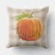 Farmhouse style champêtre automne brun clair et blanc cassé en vichy plaid motif, avec un citrouille orange vif sur le dessus. Avec l'option de customiser ou de personnaliser avec un nom de famille ou (limité) texte de votre choix. Coussin extérieur couleur automne amusant pour orner votre patio ou porche cabine avec et de l'humeur pour l'automne, les vacances Thanksgiving et Halloween.