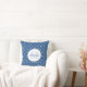 Un carré monogramme design lance un oreiller avec un motif bleu classique avec des coeurs tendance. Personnalisez en ajoutant votre nom et votre initiale monogrammée au cadre cercle chic. Partie de la collection de couleurs d'été classique de la chambre à coucher de Coeurs Bleus.