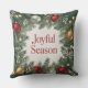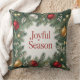 Welcome the holidays with this charming "Joyful Season" throw pillow. The design features a beautifully detailed wreath of rich pine branches and festive lights, framing bold red, gold, and white ornaments. Its centered text makes it an ideal statement piece. This cushion perfectly captures the warmth and cheer of the holidays, adding an inviting touch to your seating area. Spread joy with this gorgeous, high-quality decor.