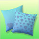 Un beau coussin Turquoise et Blue Ombre avec un tableau de coeurs bleu cornflower, le fond du coussin est de la même couleur mais avec un seul coeur dans un coin. Un joli complément à votre décor.