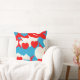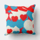 Graphiques de style rétro en rouge, blanc et bleu sur coussins confortables.