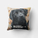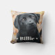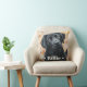 Jetez un oreiller avec votre photo d'animal de compagnie personnalisée avec le nom de l'animal comme un texte blanc superposé flanqué de deux coeurs.