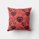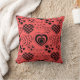 Cet oreiller de lancer a une conception de Valentine de coeur répétitif avec différents graphismes à l'intérieur sur un champ de rouge.