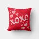 Un coussin rouge totalement mignon et romantique avec d'énormes lettres rose Xoxo avec des coeurs roses.