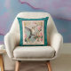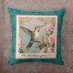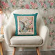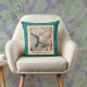 Coussin Colibri avec fleurs sur monogramme Damas Turquoise