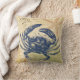 Collage de crabe bleu de bord de la mer comportant des étoiles de mer, un corail, un cachet de la poste vintage et un manuscrit. Disponible en coussins et tout autre décor à la maison.