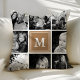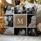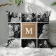 Coussin Collage photo de famille de monogramme Brown clair