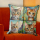 Pillow featuring 4 colorful paintings of beautiful cats. A cheerful addition to any space and a treat for cat lovers.