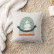 Illustrated snowman in a snowglobe. Backing features a tossed mistletoe pattern on a muted minty background. Great to flip around when the holidays are over!