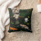 Un joli tricolore, le chat calico boit dans un étang et regarde un poisson koi avec les mêmes couleurs.