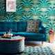 Cette conception de ventilateur bleu et or élégante présente un motif de ventilateur allant dans toutes les directions, ce qui crée un motif charmant. Un beau coussin décoratif qui embellira votre canapé ou votre lit.