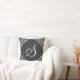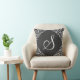 Cette belle conception offre un tissu gris-foncé avec des conceptions blanches élégantes des deux côtés. Elle comporte également un beau monogramme cursif d'une initiale de votre choix. Ceci semblerait parfait sur votre divan ou enfoncerait et ferait un excellent cadeau, particulièrement pour un cadeau de pendaison de crémaillère ou de mariage.