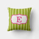 Coussin Conception rose de monogramme de rayures de vert