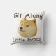 Image mignonne semblable au chien de pièce de monnaie de DOGE, avec l'expression "connard le long du petit DOGE" écrit là-dessus.