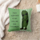 Coussin amusant pour les cool de votre vie. A droite du coussin se trouve un concombre vert aux teintes foncées, un gilet noir et des bottes marron. Il se tient debout avec des bras pliés et un sourire excentrique. Sur le côté gauche en lettres noires, il est écrit "Que votre journée soit aussi cool que ce concombre". L'arrière - plan est vert avec des rayures vert pâle.