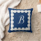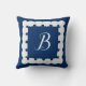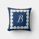 Votre monogramme sur un oreiller bleu marine à lancer avec la bordure de coquille de coquille de coquille de coquille de coquille de coquille de coquille de coquille de coquille de coquille de coquille de coquille de coquille. Cliquez sur personnaliser pour passer à vos initiales ou initiales. Décor côtier pour condo de vacances ou voilier.