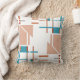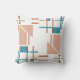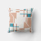 Le design géométrique et abstrait, dans les formes et les lignes de corail clair orange avec éléments bleu aqua, rouille et taupe, disposés dans un motif perpendiculaire, le tout sur un arrière - plan blanc, projette un look contemporain dans l'esprit du style moderne du milieu du siècle. Un look épuré et minimaliste, aux lignes simples et aux couleurs contrastées, projetant une qualité colorée, polie et élégante pour le salon, la chambre, l'espace de travail, la terrasse ou le patio. Il offre également un sentiment de chaleur, une ambiance détendue et paisible pour votre espace personnel, un endroit pour se retirer et contempler tout en étant à l'écart du monde animé de tous les jours. Il y a beaucoup de potentiel décoratif dans cette pièce d'accent, qui s'intègre avec un grand nombre de styles, du rétro/vintage au ranch rustique en passant par le loft urbain moderne ou l'élévation.