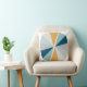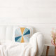 Couleur Les tranches jettent l'oreiller dans les tons bleu, gris et jaune moutarde. Marina Bleu derrière.