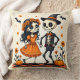Coussin Couple de squelette d'Halloween mignon en orange