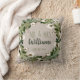 Coussin souvenir de mariage personnalisé. Ce coussin au design numérique rustique tendance en lin présente un fond de texture de lin beige naturel avec une belle couronne de verdure à l'aquarelle et de capsules de coton qui encadrent l'élégant monogramme "M. et Mme" en lettrage manuscrit tendance. Le nom de famille marié du couple est écrit dessus, avec la date du mariage en dessous. Le design est le même à l'avant et à l'arrière. Fait un excellent cadeau pour les jeunes mariés. Idéal pour votre chambre, votre fauteuil préféré, un ajout décoratif formel à votre salon ou simplement pour une décoration amusante dans votre salle familiale. Les couleurs de tous les champs de texte peuvent être modifiées comme vous le souhaitez. Copyright Anastasia Designs, tous droits réservés.