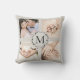 Ajoutez quatre photos et l'initiale monogrammée du couple à l'avant et aux noms complets et la date établie à l'arrière du coussin décoratif de couronne avec effet de lin arrière - plan.